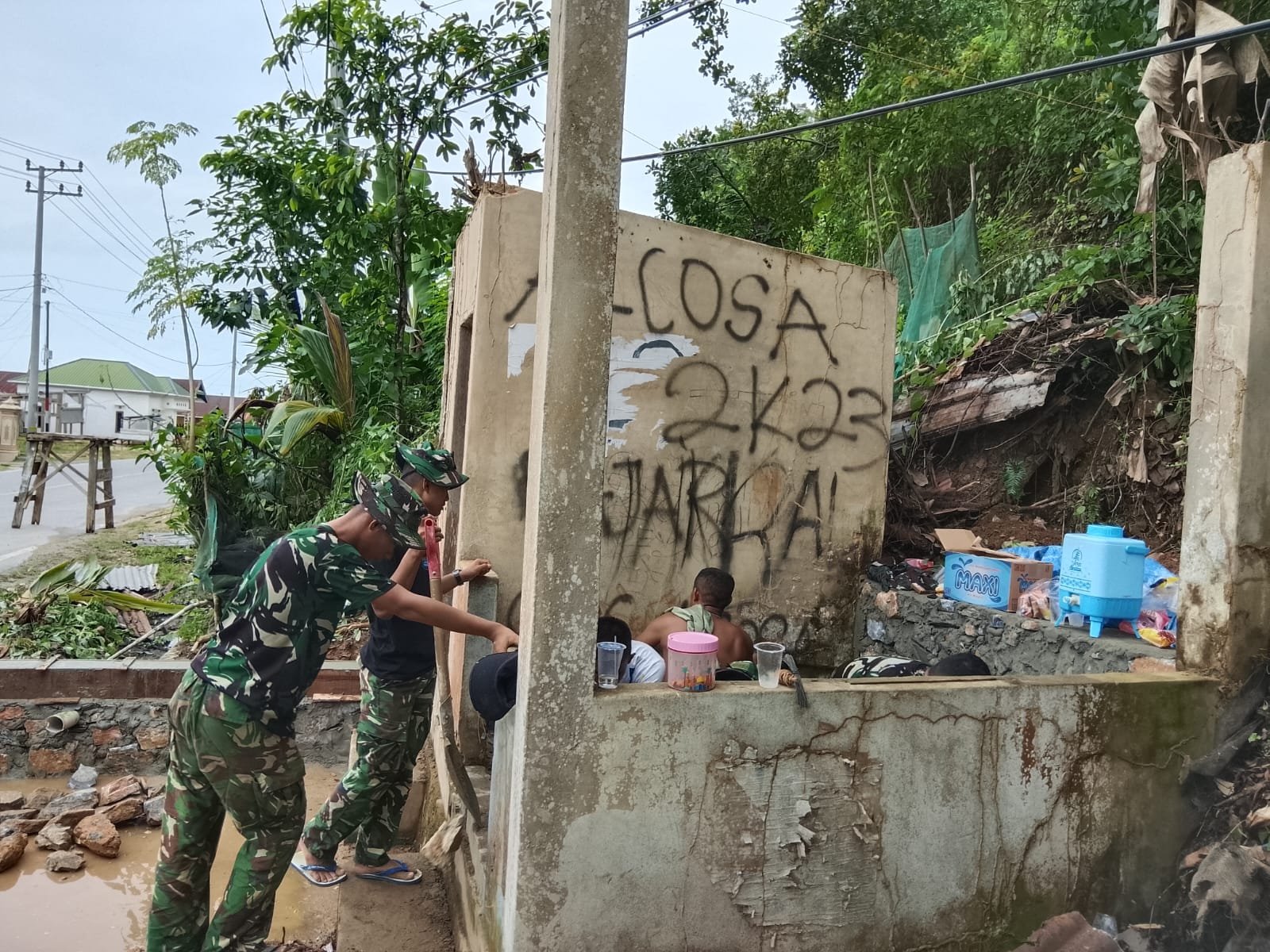 Kendari – Dalam upaya meningkatkan sanitasi lingkungan, Satgas TNI Manunggal Membangun Desa (TMMD) ke-127 Kodim 1417/Kendari telah memulai proses renovasi fasilitas Mandi, Cuci, Kakus (MCK) di Kelurahan Sambuli, Kecamatan Nambo, Kota Kendari pada Kamis (12/2). Renovasi ini diawali dengan pembongkaran lantai dasar bangunan yang mengalami kerusakan.
