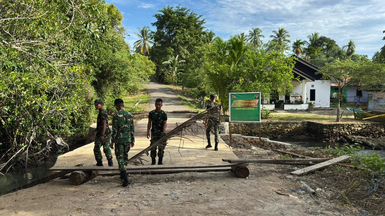 Kaimana – Satgas TNI Manunggal Membangun Desa (TMMD) ke-127 dari Kodim 1804/Kaimana terus berupaya menyelesaikan berbagai sasaran pembangunan fisik di Kampung Marsi, Distrik Kaimana, Kabupaten Kaimana. Pada hari Minggu (09/03/2026), para anggota Satgas TMMD melaksanakan tahap finishing pada perbaikan jembatan yang menjadi jalur vital bagi penduduk setempat.
