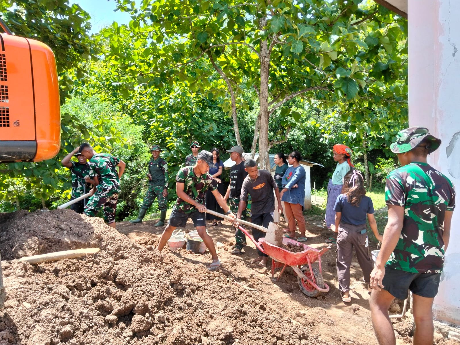 Selama kegiatan ini, terlihat kerjasama yang baik antara personel Satgas dan masyarakat setempat. Mereka saling membantu dalam mengangkat dan menata kayu ke dalam alat transportasi. Semangat gotong royong yang ditunjukkan menjadi salah satu kekuatan yang mempercepat proses distribusi material.