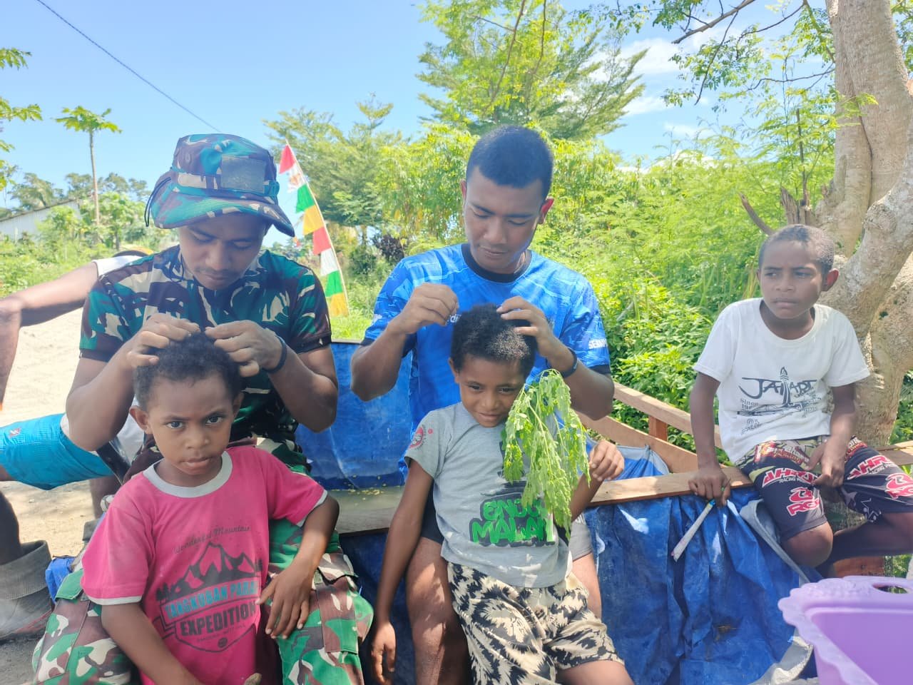 Dengan melakukan interaksi melalui berbagai permainan sederhana, anggota Satgas berusaha menciptakan suasana yang nyaman, akrab, dan membangun kepercayaan anak-anak terhadap kehadiran TNI di tengah komunitas.