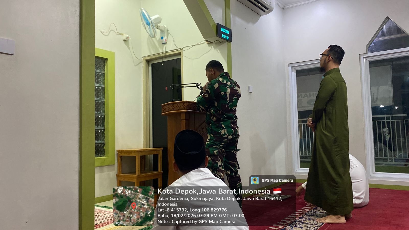 Depok – Hubungan harmonis antara Satgas TMMD Ke-127 TA 2026 dan masyarakat setempat tidak hanya terjalin dalam kegiatan pembangunan, tetapi juga dalam pelaksanaan ibadah. Pada malam Kamis, 19 Februari 2026, anggota dari Kodim 0508/Depok melaksanakan sholat Tarawih berjamaah dengan warga di Mushalla Ar Rahman, yang terletak di Jl. GDC Sektor Gardenia, Kelurahan Tirtajaya, Kecamatan Sukmajaya.