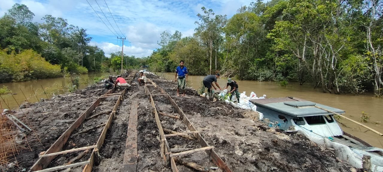 Barito Selatan – Dalam rangka mengejar target fisik program TMMD Reguler ke-124, personel Satgas Kodim 1012/Buntok bersama warga Desa Talio, Kecamatan Karau Kuala, Kabupaten Barito Selatan, melakukan pemasangan papan bekisting untuk pengecoran jalan pada Minggu (25/05/2025).