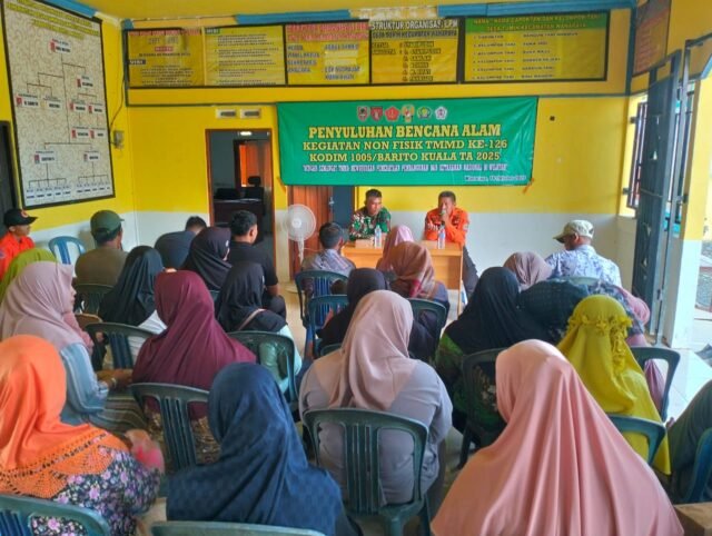 Melalui program nonfisik, Satgas TMMD bersama instansi terkait melaksanakan penyuluhan tentang penanggulangan bencana alam yang digelar di Balai Desa Tumih, Kecamatan Wanaraya, pada Kamis (16/10/2025).