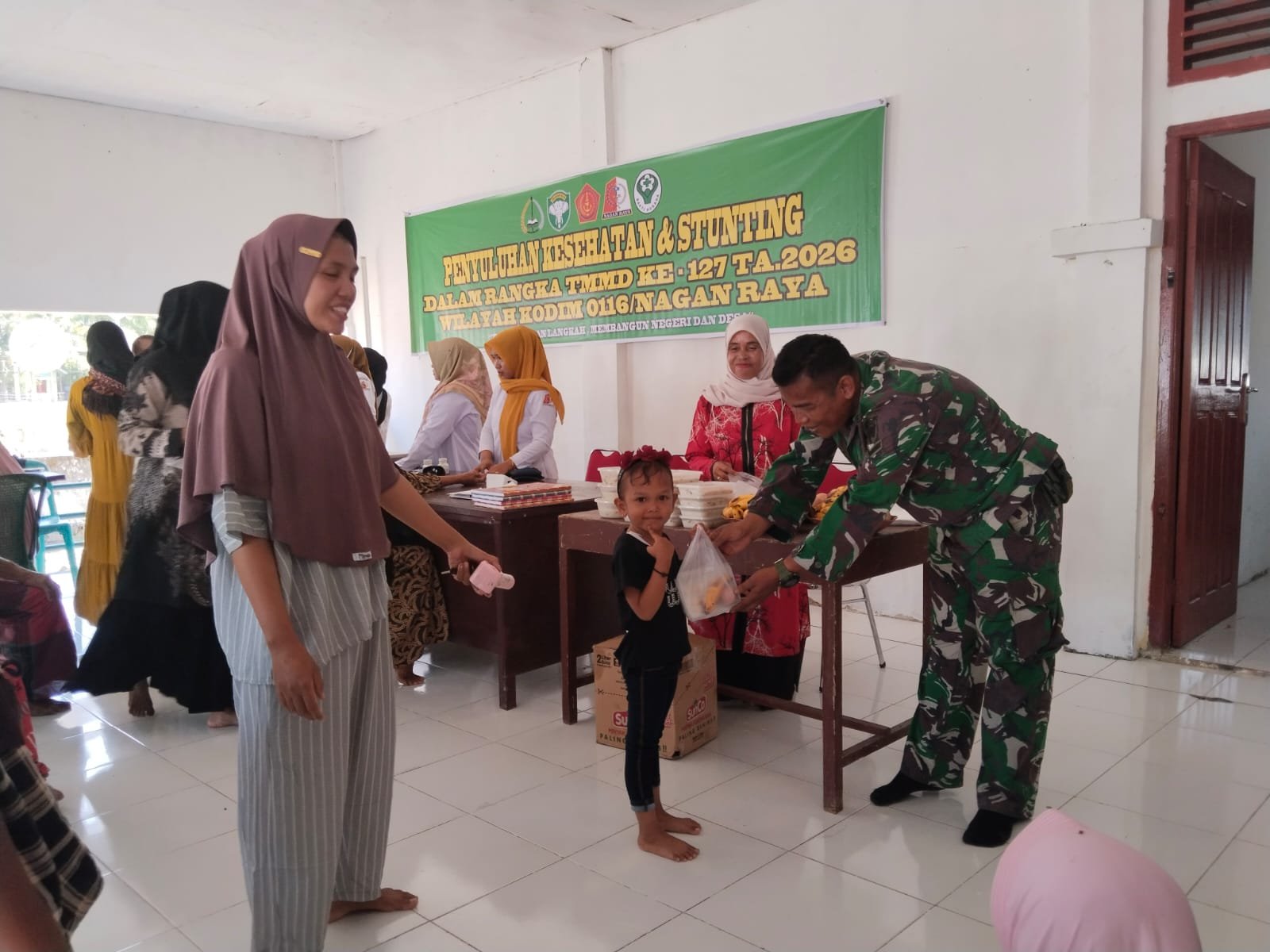 NAGAN RAYA – Program TMMD Ke-127 Kodim 0116/Nagan Raya menjadi contoh nyata kolaborasi lintas sektor dalam membangun desa. Tidak hanya alat berat dan pekerjaan fisik, kegiatan ini juga menghadirkan penyuluhan kesehatan bersama Puskesmas Beutong.