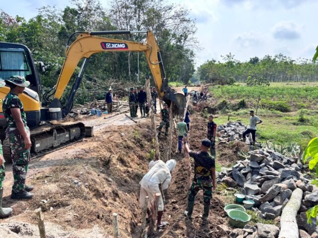Tulang Bawang,— Proses pembangunan talud sebagai salah satu sasaran fisik TMMD ke-125 Kodim 0426/Tulang Bawang terus berjalan dengan lancar dan terencana. Setelah tahap penggalian selesai dilakukan, Satgas TMMD bersama warga melanjutkan ke tahap berikutnya, yaitu pemasangan kayu sebagai penahan tanah pada pondasi talud di Kampung Moris Jaya, Kecamatan Banjar Agung, Kabupaten Tulang Bawang.