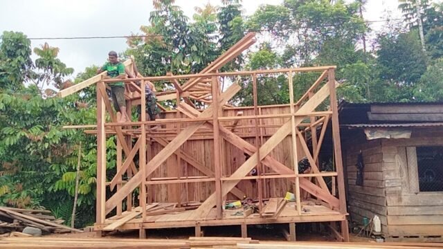 Pengerjaan ini menjadi bagian penting dari upaya meningkatkan kesejahteraan masyarakat di wilayah perbatasan melalui penyediaan hunian yang layak dan sehat. Progres pembangunan RTLH di Waropko berjalan cepat — setelah RTLH pertama rampung 100 persen, kini Satgas menggenjot penyelesaian rumah kedua.