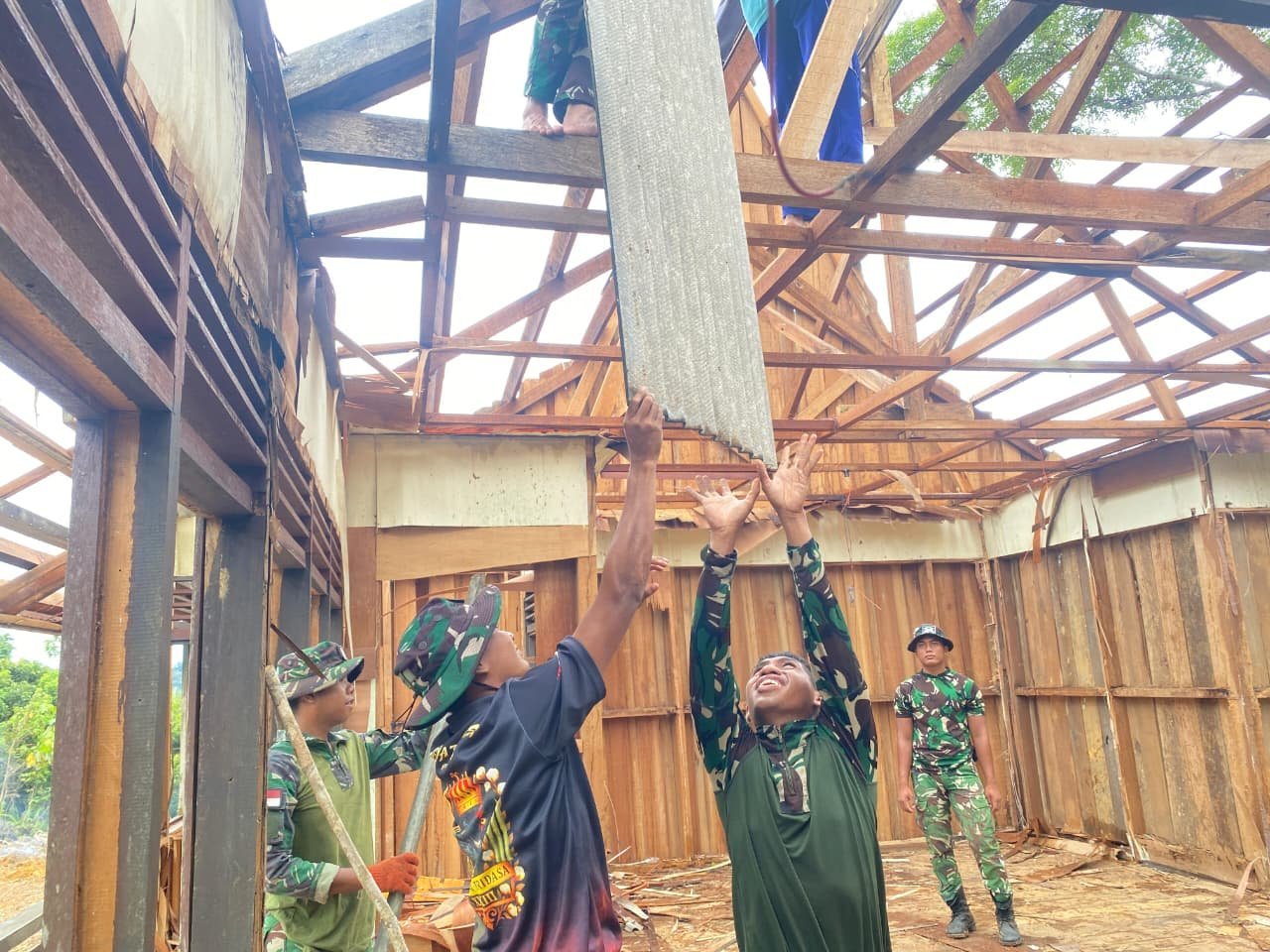 Kegiatan tersebut menjadi salah satu bentuk nyata sinergi antara TNI dan masyarakat dalam mempercepat pembangunan infrastruktur desa melalui program TMMD. Proses pembongkaran dilakukan secara sukarela oleh anggota Satgas bersama warga jemaat setempat dengan penuh kekompakan dan kebersamaan.