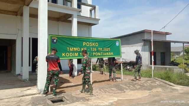 Kubu Raya, 15 Oktober 2025 — Dalam rangka mendukung kelancaran pelaksanaan program TNI Manunggal Membangun Desa (TMMD) ke-126, Satuan Tugas (Satgas) TMMD Kodim 1207/Pontianak melaksanakan kegiatan pembenahan Posko TMMD yang berlokasi di Gang Mulia, Jalan Karya Dua, Desa PAL IX, Kecamatan Sungai Kakap, Kabupaten Kubu Raya, Provinsi Kalimantan Barat, pada Rabu (15/10/2025).