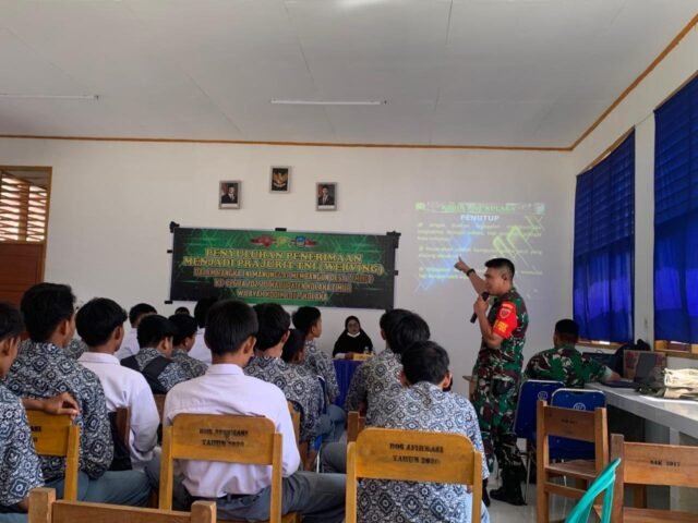 Kolaka Timur – Dalam rangka kegiatan nonfisik program TNI Manunggal Membangun Desa (TMMD) ke-126, Kodim 1412/Kolaka melaksanakan kegiatan penyuluhan tentang penerimaan prajurit TNI Angkatan Darat di SMA Negeri 1 Ueesi, Desa Ueesi, Kecamatan Ueesi, Kabupaten Kolaka Timur, Rabu (15/10/2025).