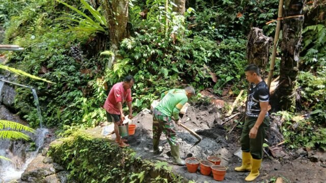 Pekerjaan ini merupakan tahap penting dalam mewujudkan akses air bersih yang lebih mudah bagi warga setempat. Dengan semangat gotong royong, prajurit TNI dan masyarakat bahu-membahu mengaduk semen, mengangkut batu, serta menyusun pondasi di tengah medan yang cukup menantang.