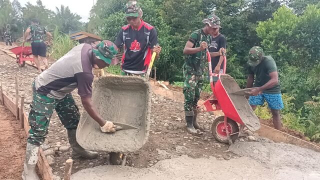 Boven Digoel – Satuan Tugas (Satgas) TNI Manunggal Membangun Desa (TMMD) ke-126 Kodim 1711/Boven Digoel mulai melaksanakan pekerjaan pengecoran jalan di Kampung Waropko, Distrik Waropko, Kabupaten Boven Digoel, Rabu (15/10/2025).