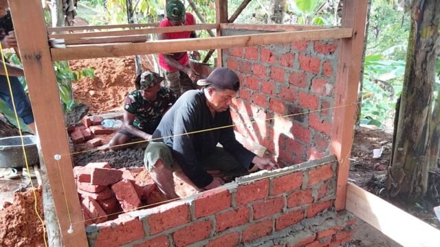Kini, pekerjaan telah memasuki tahap pemasangan dinding batu bata, di mana personel Satgas TMMD ke-126 bersama warga setempat bahu membahu menyusun bata demi bata agar bangunan berdiri kokoh dan tahan lama.