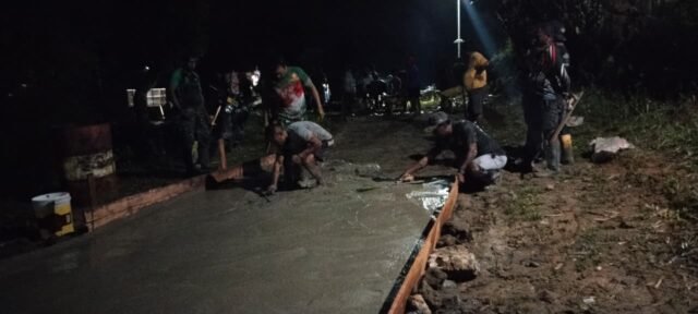 Boven Digoel – Demi memastikan pembangunan jalan cor beton segera rampung sesuai target, Satgas TMMD Ke-126 Kodim 1711/BVD melaksanakan kerja lembur hingga malam hari di Kampung Waropko, Distrik Waropko, Selasa (04/11/2025). Meski pencahayaan terbatas, personel TNI bersama warga tetap bersemangat melanjutkan pengecoran jalan yang menjadi akses utama masyarakat.