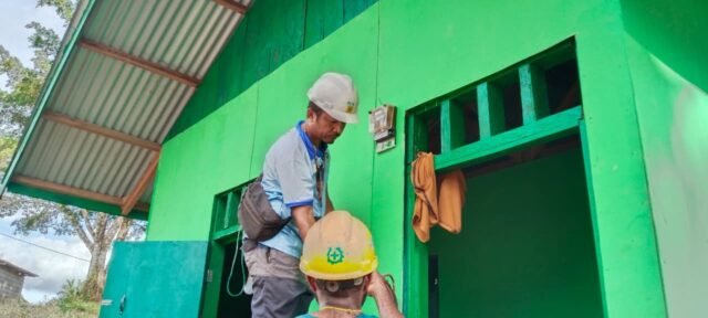 Pemasangan instalasi listrik dilakukan mulai dari penarikan kabel, pemasangan stop kontak, saklar, hingga pengecekan aliran listrik sebelum disambungkan ke sumber energi. Tahapan ini dikerjakan secara teliti oleh personel Satgas yang sudah memiliki keahlian di bidang kelistrikan agar rumah yang dibangun dapat benar-benar berfungsi secara optimal dan aman digunakan.