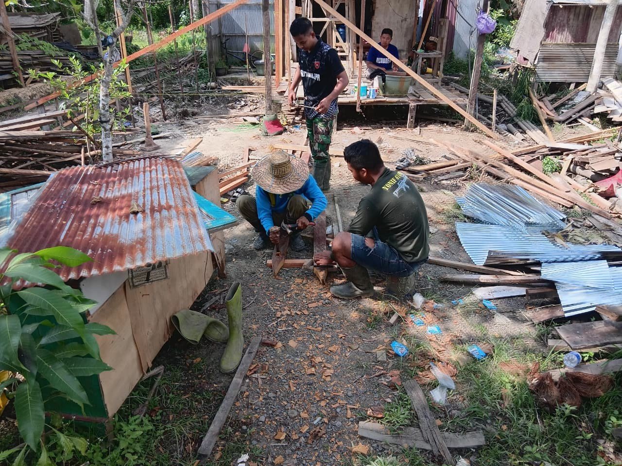 Tolitoli – Satgas TMMD ke-127 yang berasal dari Kodim 1305/Buol Tolitoli terus mempercepat pembangunan Rumah Tidak Layak Huni (RTLH) di Dusun Ogomolobu, Desa Oyom, Kecamatan Lampasio, Kabupaten Tolitoli pada Sabtu (7/3/2026). Program ini bertujuan untuk meningkatkan kesejahteraan masyarakat dengan menyediakan rumah yang lebih layak bagi mereka yang membutuhkan. Dalam pelaksanaan kegiatan ini, anggota Satgas TMMD bekerja sama dengan warga setempat secara aktif. Mereka terlibat dalam berbagai aktivitas, mulai dari pemasangan material bangunan, penguatan struktur rumah, hingga penataan dinding dan atap. Keberadaan antusiasme masyarakat dalam proses pembangunan menunjukkan bahwa program TMMD berhasil mendorong semangat gotong royong di kalangan penduduk desa. Melalui inisiatif yang digagas oleh Tentara Nasional Indonesia (TNI) ini, diharapkan pembangunan RTLH dapat segera selesai sehingga masyarakat penerima manfaat bisa segera menempati rumah yang lebih layak dan nyaman.