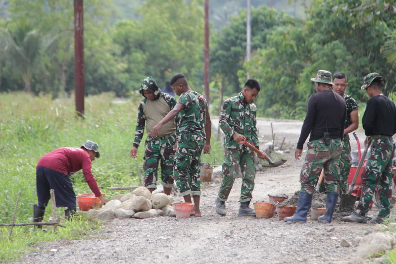 Satgas TMMD ke-127 Membangun Talud 1.030 Meter untuk Perkuat Jalan di Desa Oyom