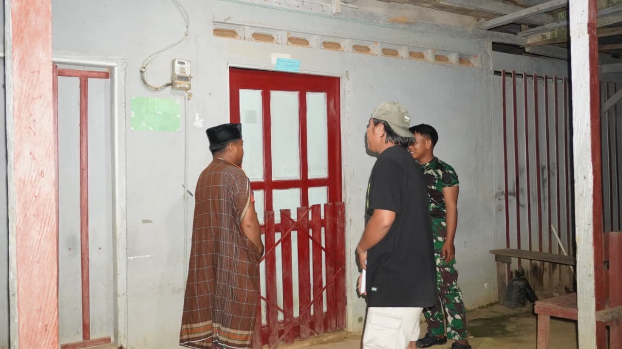 Personel Satgas menjelajahi area desa guna memastikan bahwa situasi tetap kondusif dan aman bagi masyarakat yang sedang mempersiapkan santap sahur sebelum menjalankan ibadah puasa. Kehadiran anggota TNI di waktu yang sepi ini memberikan rasa aman dan tenang bagi warga.