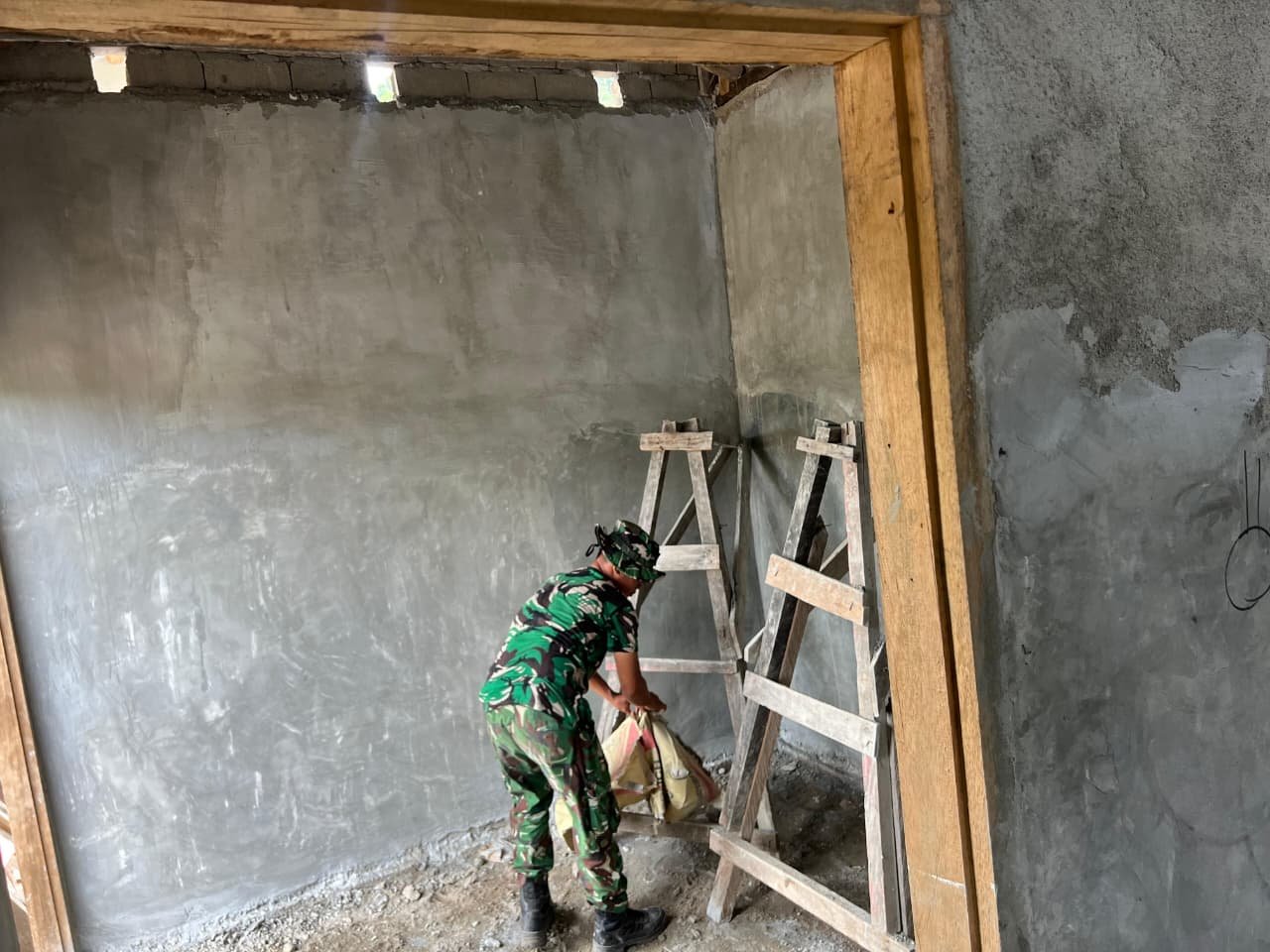 Personel Tentara Nasional Indonesia (TNI) yang tergabung dalam Satgas TMMD telah berkolaborasi dengan warga setempat dalam setiap tahap pembangunan rumah. Pekerjaan yang dilakukan mencakup penyelesaian pondasi, pemasangan dinding, dan pengerjaan struktur bangunan agar rumah dapat segera dihuni.