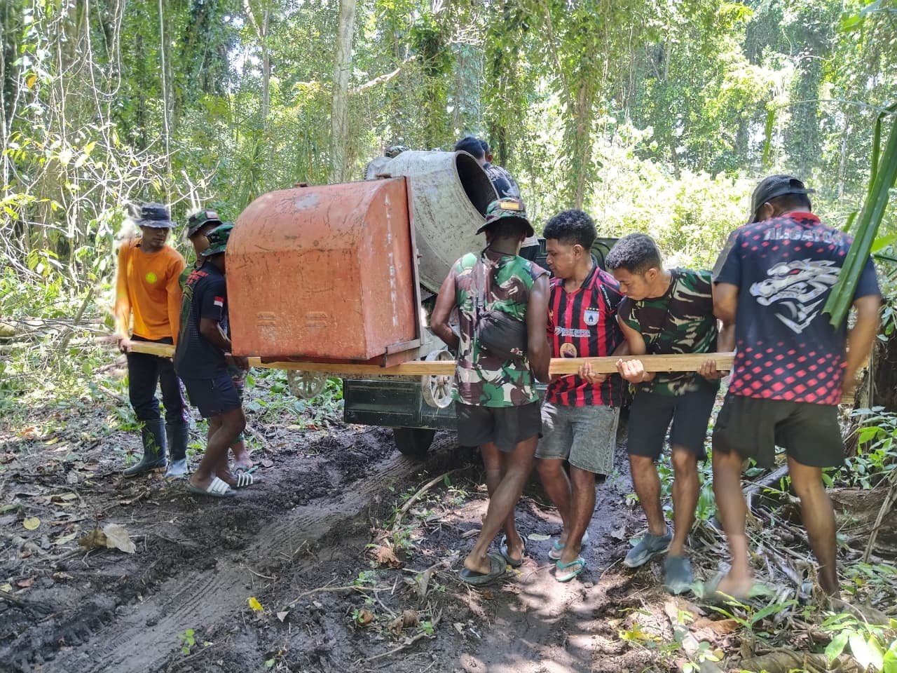 Manokwari, Papua Barat — Di tengah tantangan medan yang sulit, Satgas TMMD ke-128 Kodim 1801/Manokwari tetap berkomitmen untuk mendukung pembangunan di Kampung Tanah Rubuh, Distrik Manokwari Utara pada Minggu (26/04/2026).
