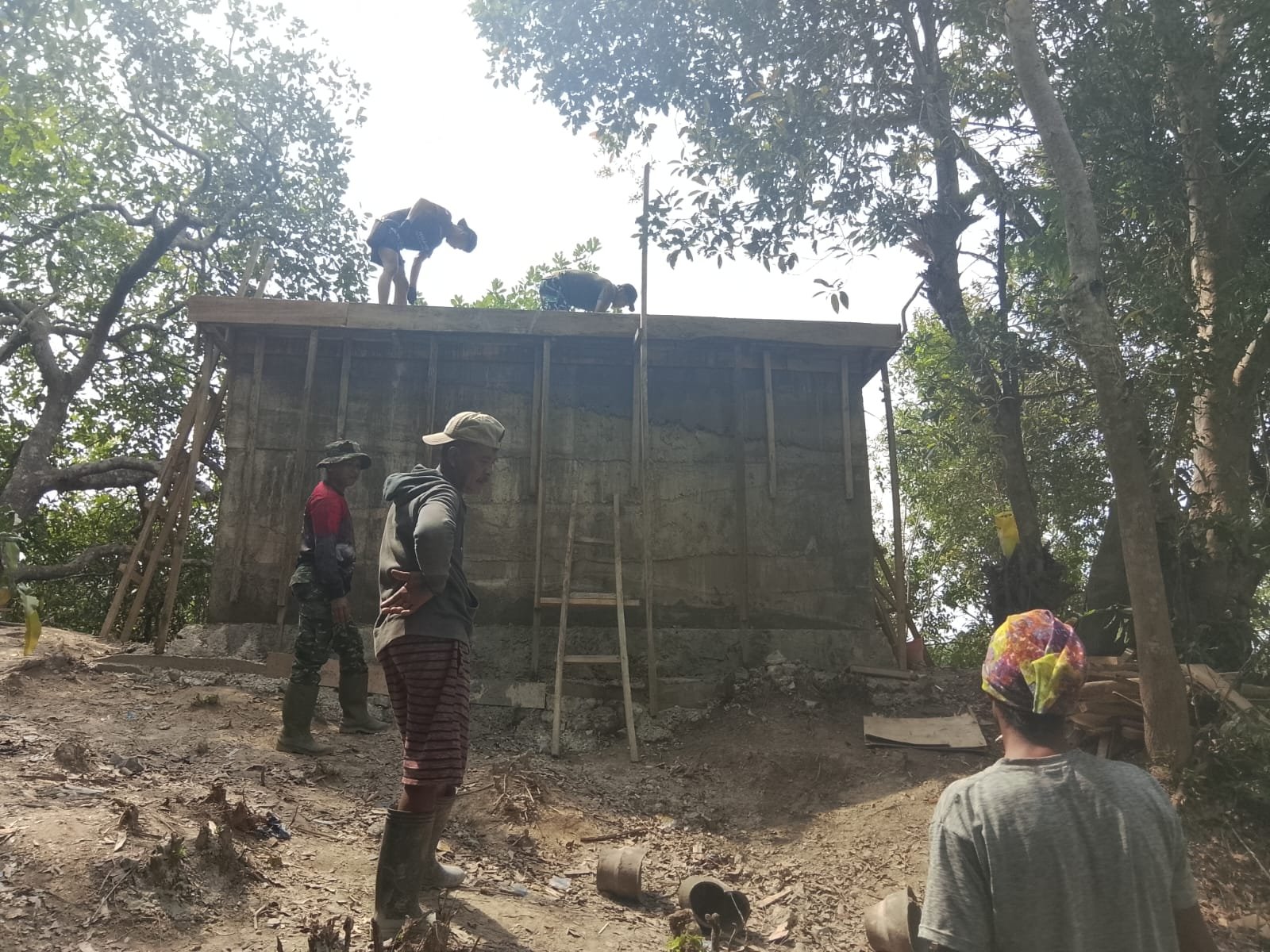 Di lokasi proyek, anggota TNI bekerja sama dengan warga setempat dalam mencampur material seperti semen, pasir, serta kerikil. Campuran ini langsung dituangkan ke dalam konstruksi bak penampungan yang sedang dibangun.