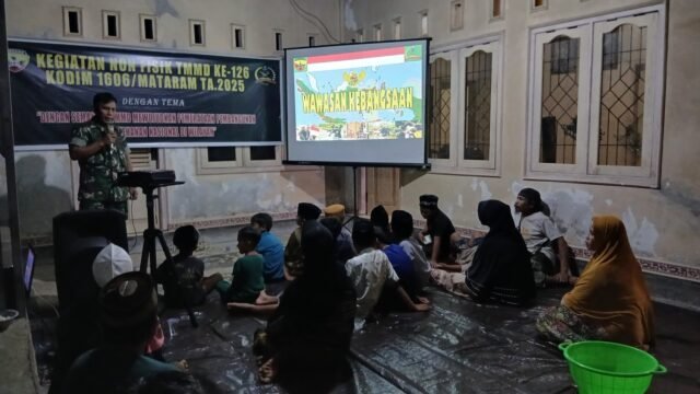 Lombok Barat, NTB – Semangat kebangsaan kembali digaungkan oleh Satuan Tugas (Satgas) TNI Manunggal Membangun Desa (TMMD) ke-126 Kodim 1606/Mataram. Melalui kegiatan sosialisasi Wawasan Kebangsaan (Wasbang) di Dusun Gubuk Baru, Desa Giri Madia, Kecamatan Lingsar, Sabtu malam (11/10/2025), Satgas TMMD mengajak masyarakat menumbuhkan rasa cinta tanah air dan persatuan bangsa.
