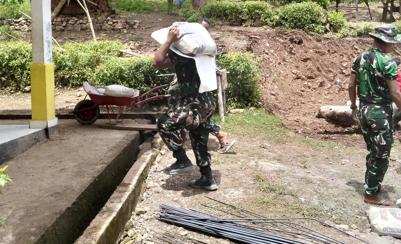 Di tengah medan perbukitan yang menantang, prajurit TNI bersama masyarakat lokal saling berkolaborasi dalam proses penurunan semen, pengangkatan besi, dan penyusunan batako. Kerja sama ini tidak hanya memperlihatkan ketangguhan dalam bertugas, tetapi juga menegaskan kemanunggalan antara TNI dan rakyat.