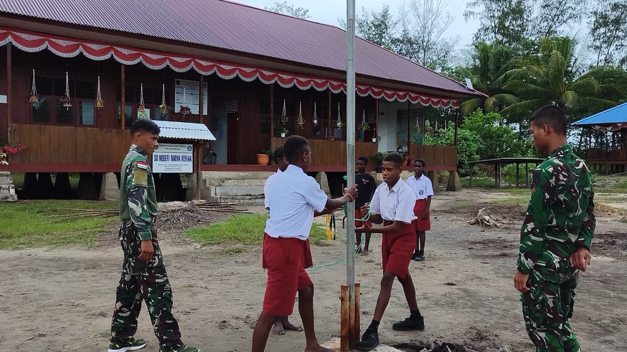 Mimika — Dalam rangka mempersiapkan upacara Hardiknas, Satgas TMMD ke-128 Kodim 1710/Mimika mengadakan pelatihan di SD Negeri Naena Keakwa. Kegiatan ini tidak hanya sekedar persiapan upacara, tetapi juga berupaya menanamkan nilai-nilai positif kepada siswa-siswi yang terlibat.