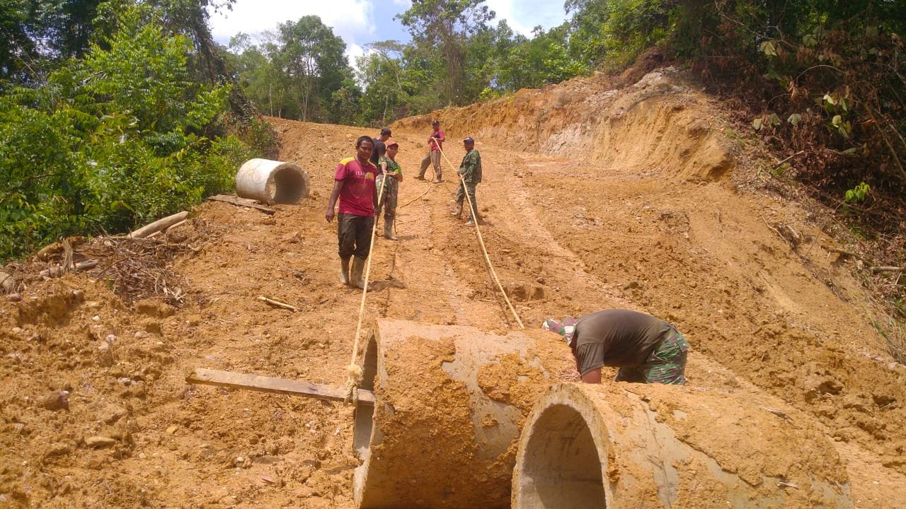 Kapten Inf Amrin yang berada di lokasi menjelaskan bahwa gorong-gorong berfungsi sebagai saluran air agar konstruksi jalan tetap kuat.