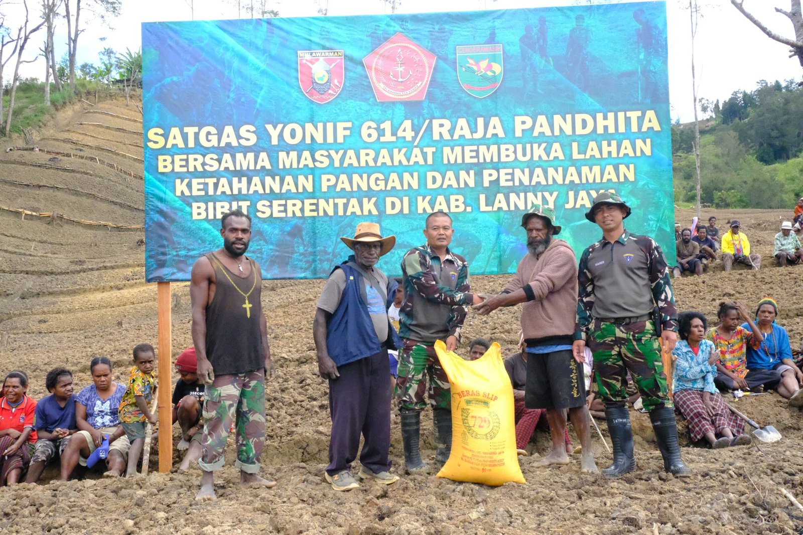 Sementara itu, Ketua Kelompok Tani Ninabua Bapak Arnold mewakili warga masyarakat mengungkapkan rasa syukur atas dukungan Satgas Yonif 614/RJP.