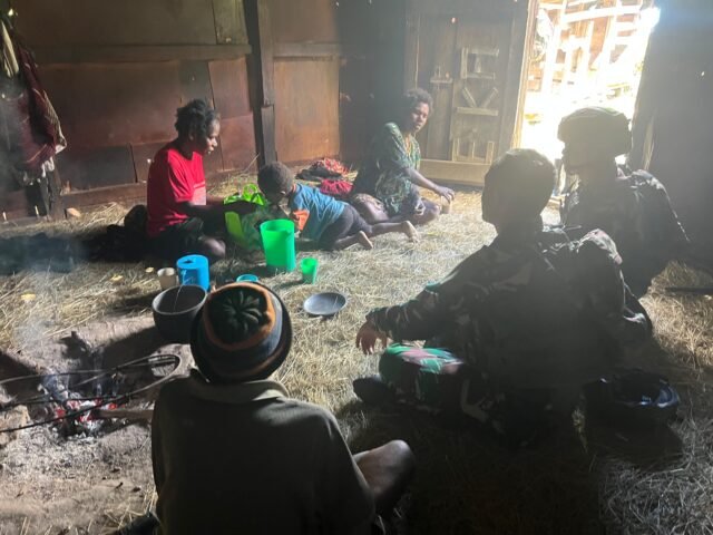 LANNY JAYA – Personel Pos Balingga Satgas Yonif 614/RJP dipimpin oleh Wadanpos Letda Inf Baraq Al Hakiki bersama beberapa personel melaksanakan anjangsana sekaligus komunikasi sosial dengan tokoh masyarakat Bapak Otto (46) bertempat di Kampung Balingga, Distrik Balingga, Kabupaten Lanny Jaya, Papua Pegunungan, Rabu (23/7/2025)