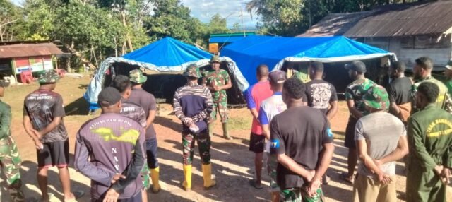 “Kita sudah berjalan satu minggu. Jaga semangat, jaga disiplin, dan tetap bersama dalam membangun desa ini,” ujar Kapten Inf Melianus memberi arahan.