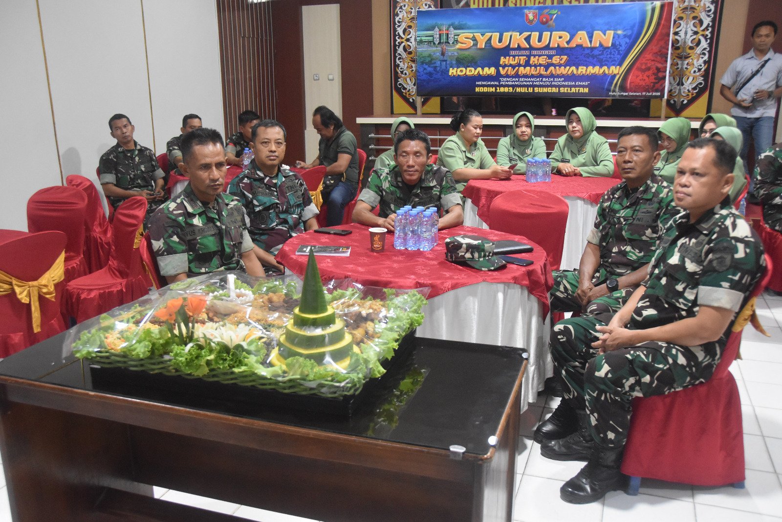 Melalui Perwira Seksi Personiel Kapten Inf Abdi Brawijaya Komandan Kodim 1003/HSS memberikan keterangan, meskipun tidak dapat berhadir secara langsung dalam rangkaian syukuran yang terpusat di Makodam VI/Mulawarman di Balikpapan, namun rasa sukur dan bangga mengikuti beberapa rangkaian kegiatan meskipun melalui virtual