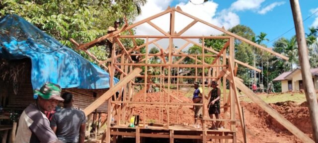 Boven Digoel – Semangat gotong royong antara TNI dan masyarakat kembali terlihat di Kampung Waropko, Distrik Waropko, Kabupaten Boven Digoel. Dalam rangka pelaksanaan Program TNI Manunggal Membangun Desa (TMMD) ke-126 Kodim 1711/Boven Digoel, para prajurit Satgas bersama warga setempat bahu-membahu memasang rangka atap rumah tidak layak huni (RTLH) milik warga bernama Bapak Roni, Kamis (16/10/2025).