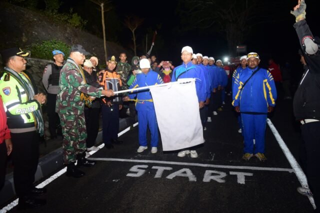 TTS _ Dandim 1621/TTS Letkol Inf Gunawan Budhi Prasetyo S. Sos Bersama forkopimda kab.TTS melepas peserta lomba gerak jalan 45 KM dalam rangka menyongsong HUT RI Yang Ke 80 kegiatan berlangsung di lokasi bendungan temef kec. Oenino kab.TTS Pada Selasa malam pukul 23.57 Wita