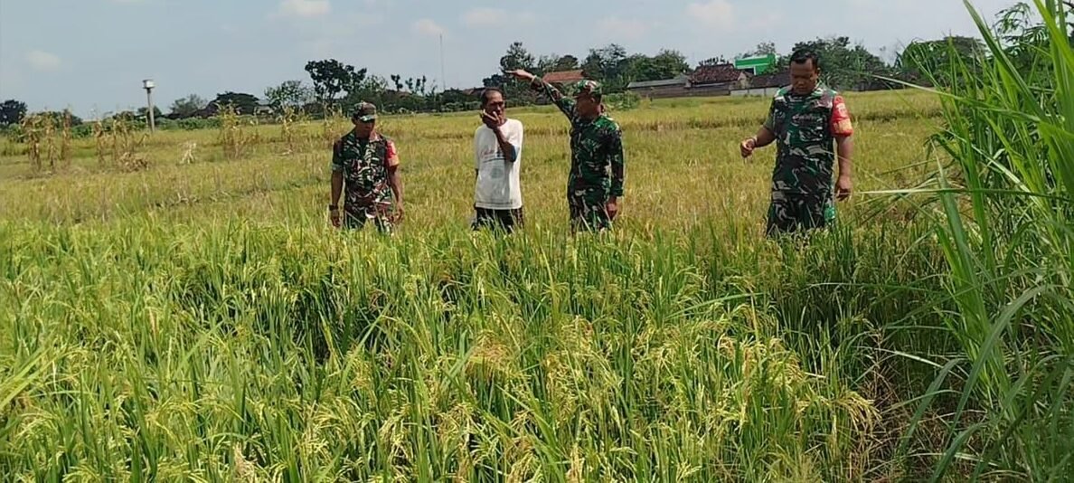 Sragen – Sebagai wujud kepedulian terhadap ketahanan pangan di wilayah binaannya, Babinsa Desa Girimargo Koramil 16/Miri Kodim 0725/Sragen Serka Slamet Sriyanto melaksanakan pendampingan kepada petani dalam memantau pertumbuhan tanaman padi yang telah memasuki fase pembentukan bulir. Kegiatan ini dilakukan langsung di area persawahan bersama para petani setempat.