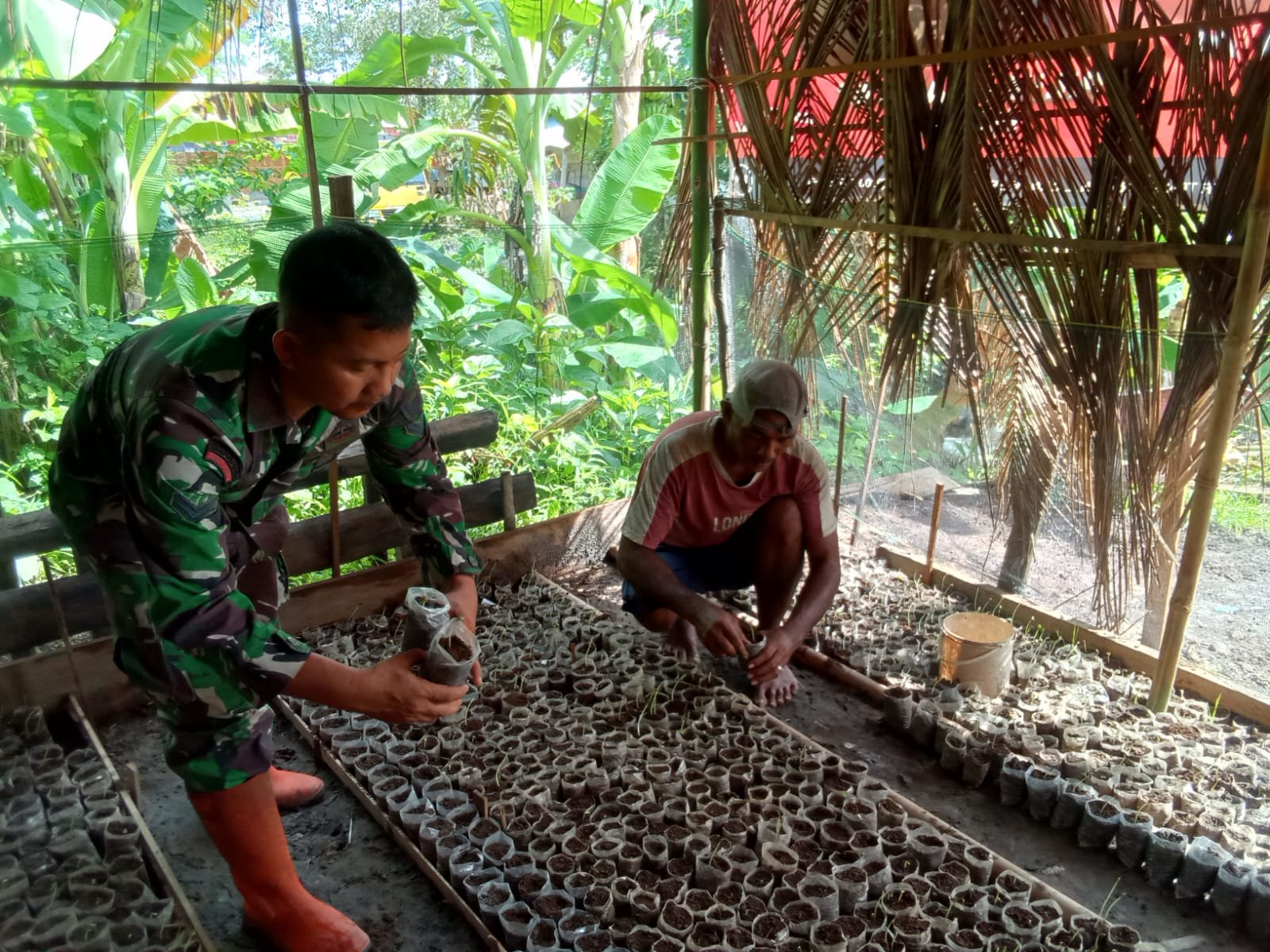 Dengan semangat dan kepedulian tinggi, Sertu Sarwono turun langsung ke ladang membantu warga menyemai bibit cabai. Kehadirannya bukan sekadar formalitas, melainkan wujud nyata komitmen dan kepedulian dalam mendukung ketahanan pangan di wilayah binaannya.