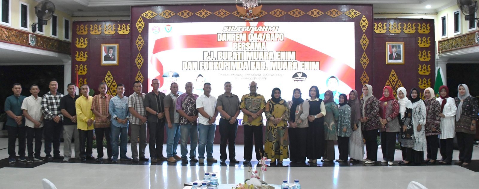 Muara Enim – Komandan Korem 044/Garuda Dempo Brigjen TNI Adri Koesdyanto beserta Ibu Ketua Persit KCK Koorcab Rem 044 PD II Sriwijaya dan staf, bersilaturahmi dengan Forkopimda Kabupaten Muara Enim, Rabu (22/1/2025).