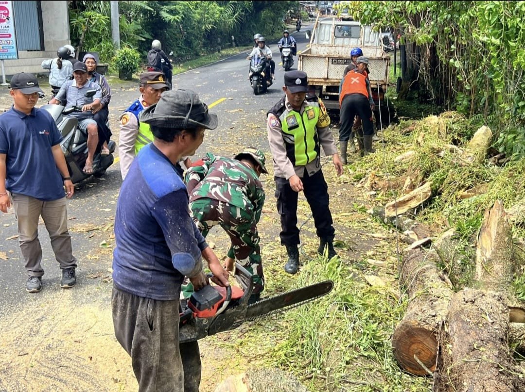 Sinergi Aparat dan Warga Desa Luwus Tebang Pohon Rawan Roboh untuk Keamanan