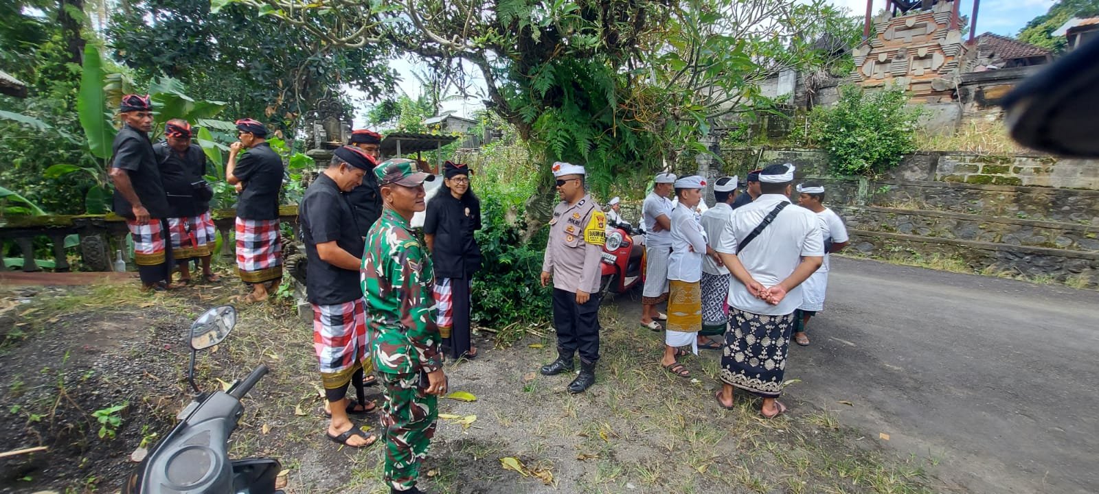 Bangli – Dalam rangka mengamankan upacara keagamaan Ngerauhang Ida Betara, Sertu I Dewa Gede Mertawan yang merupakan Babinsa Desa Abuan dari Koramil 1626-02/Susut, berkolaborasi dengan Aiptu I Komang Budiartha, Bhabinkamtibmas Desa Abuan, serta Pecalang dari Banjar Adat Abuan dan Banjar Adat Serokadan. Kegiatan ini dilaksanakan di Pura Dalem Sari yang terletak di Banjar Adat Abuan, Desa Abuan, Kecamatan Susut, Kabupaten Bangli pada hari Sabtu, 7 Februari 2026.