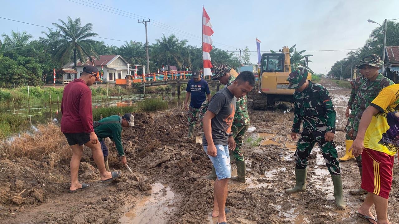 Banyuasin, pada hari ketujuh pelaksanaan Program TNI Manunggal Membangun Desa (TMMD) ke-127, anggota Satgas TMMD 127 Kodim 0430/BA berkolaborasi dengan masyarakat setempat untuk mempercepat pekerjaan fisik. Kegiatan yang dilakukan adalah gotong royong dalam membersihkan dan membuka badan jalan penghubung antara Desa Wonosari dan Desa Rukun Makmur pada 17 Februari 2026.