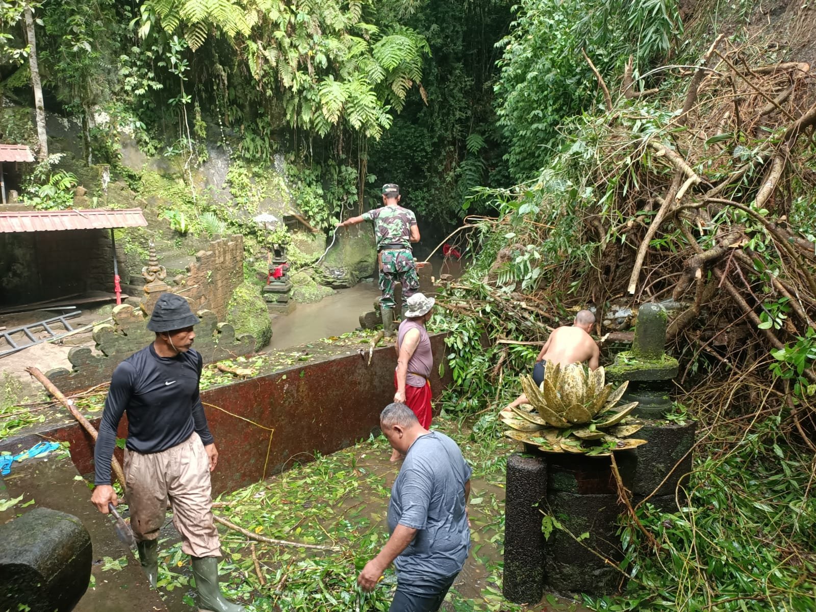 Kegiatan gotong royong ini bertujuan untuk memastikan keamanan masyarakat dan kelancaran aktivitas keagamaan di area tersebut. “Kami bersama Pecalang dan warga setempat segera bergerak untuk membersihkan material longsor ini supaya tidak menimbulkan bahaya bagi masyarakat dan kegiatan spiritual,” tutur Sertu Mertawan.