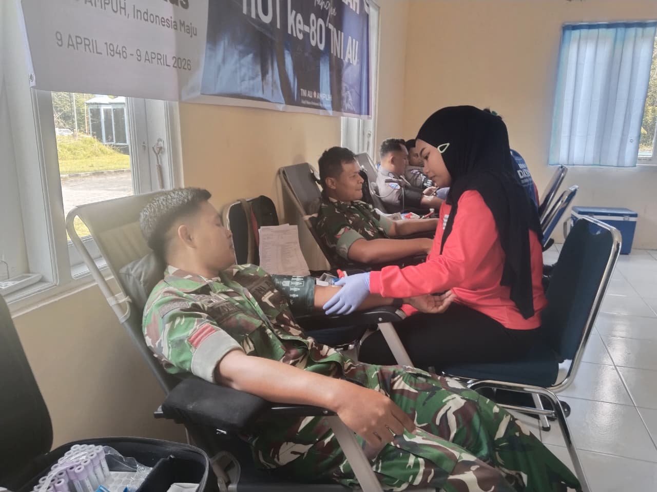 Sinergi TNI dan Polri dalam Kegiatan Donor Darah HUT TNI AU ke-80 di Kotawaringin Barat
