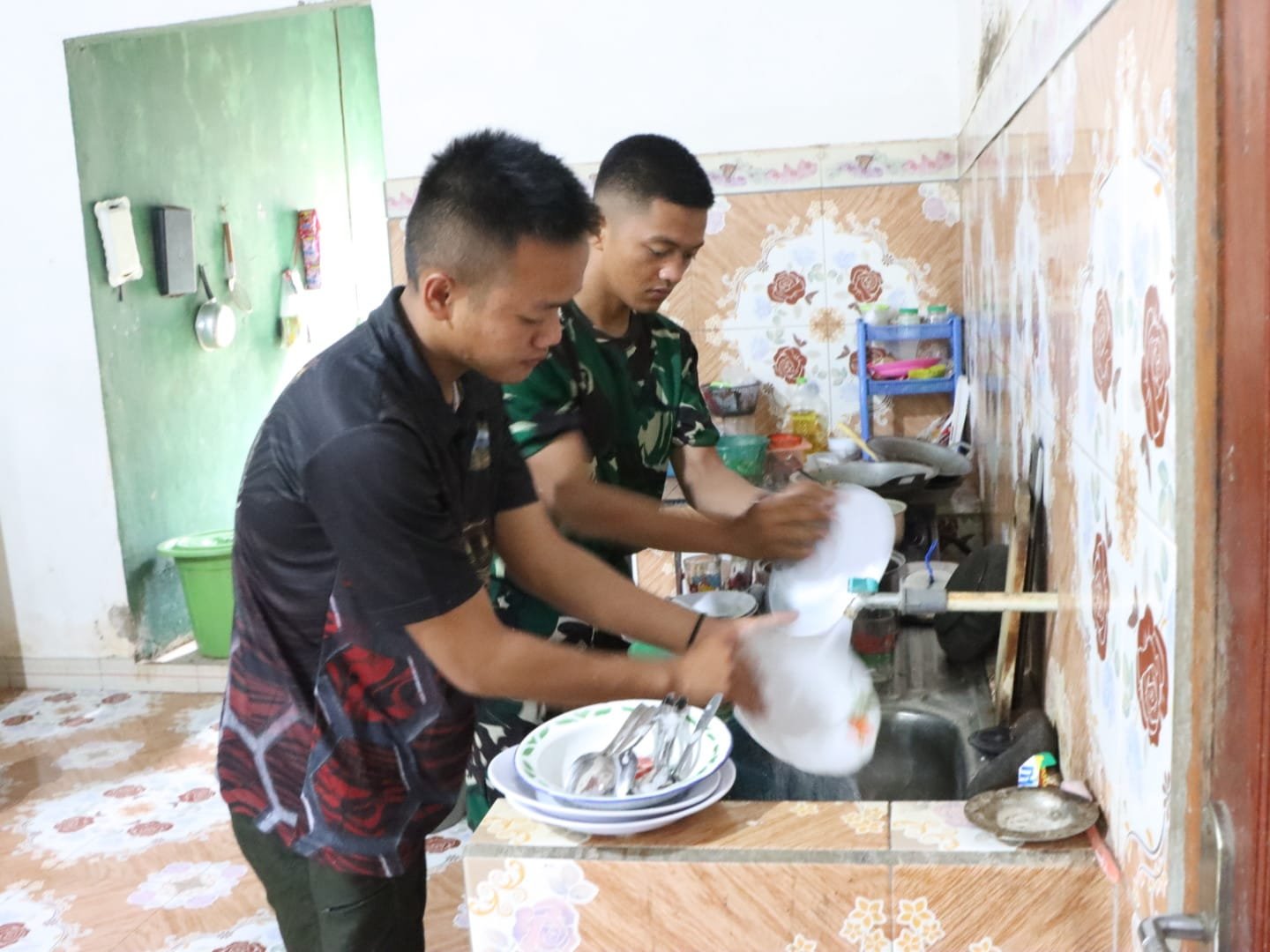 Momen saat membantu mencuci piring tersebut juga berfungsi sebagai ajang komunikasi santai antara anggota Satgas dan keluarga tuan rumah. Dalam suasana yang hangat, tercipta interaksi yang mengundang tawa dan cerita, semakin mempererat hubungan antar mereka.