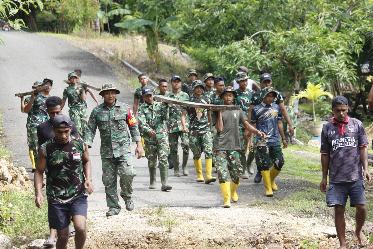 Proses pemindahan balok-balok ini bertujuan untuk memperkuat struktur jembatan, sehingga dapat memberikan ketahanan dan durabilitas yang lebih baik. Dalam pelaksanaannya, anggota TNI dan masyarakat setempat saling bergotong royong, bekerja dengan penuh semangat untuk mengangkat balok-balok tersebut demi mempercepat penyelesaian proyek.