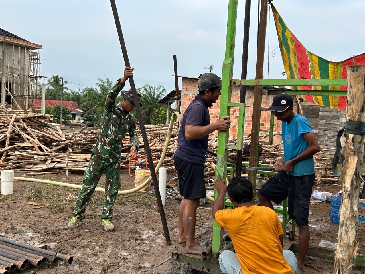 Banyuasin – TNI dan masyarakat menunjukkan kerja sama yang erat dalam pelaksanaan program TNI Manunggal Membangun Desa (TMMD) ke-127, yang diselenggarakan oleh Kodim 0430/BA di Desa Wonosari, Kecamatan Pulau Rimau. Dalam kegiatan ini, anggota Satgas TMMD bersama dengan masyarakat setempat bergotong royong untuk mengerjakan pengeboran sumur dengan menggunakan peralatan yang telah disediakan. Proses pengeboran dilakukan secara intensif agar dapat mencapai kedalaman yang ditetapkan sehingga sumber air dapat diperoleh dengan maksimal.