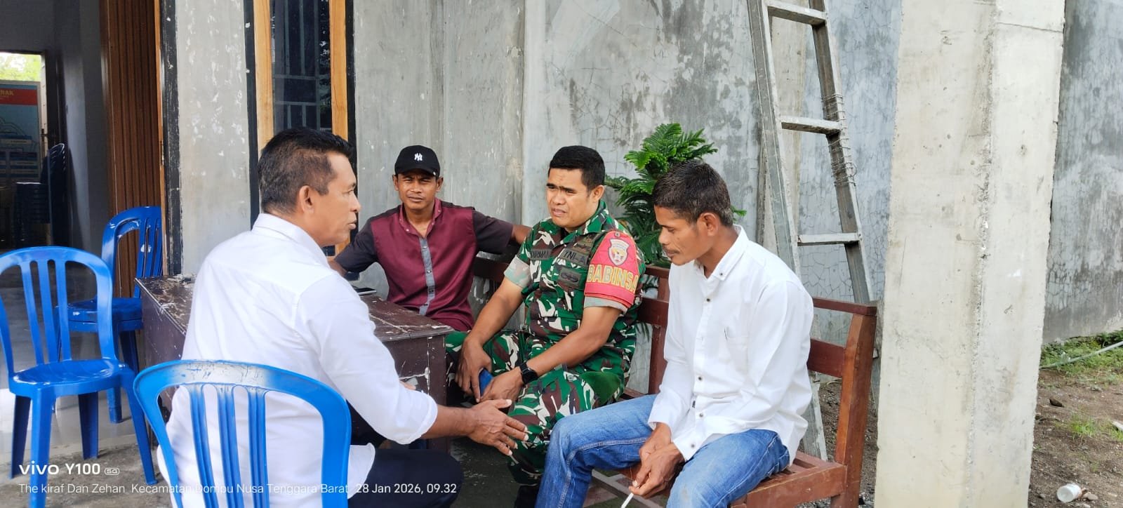 Dompu, NTB – Dalam upaya memperkuat hubungan kerjasama di tingkat desa, anggota Babinsa dari Koramil 1614-01/Dompu melaksanakan kegiatan Komunikasi Sosial (Komsos) pada hari Senin, 2 Februari 2026. Kegiatan ini dipimpin oleh Sertu Sudirman dan berlangsung di depan Kantor Desa Nowa, melibatkan perangkat desa setempat.