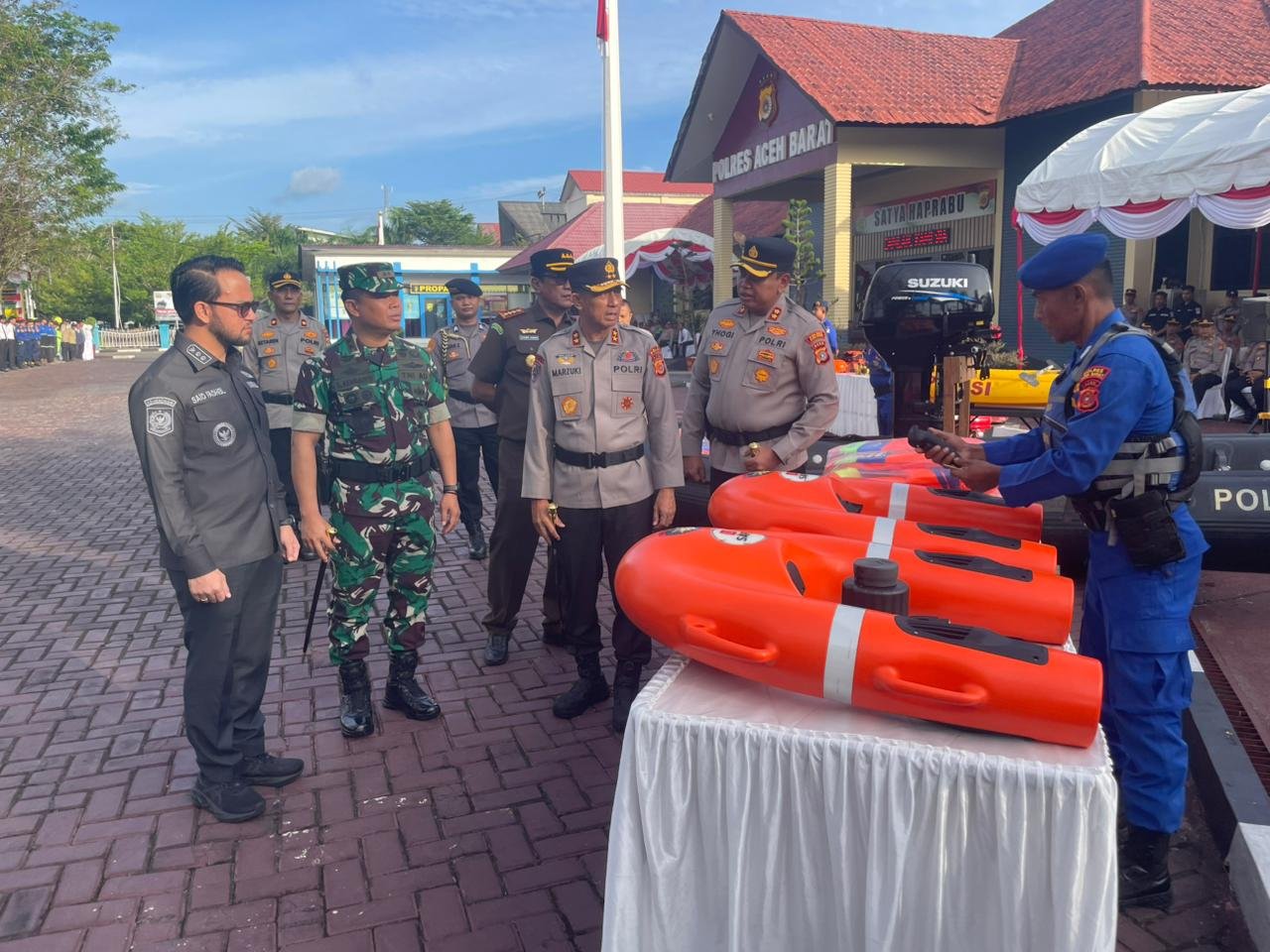 Rangkaian kegiatan apel dimulai dengan persiapan pasukan, laporan Komandan Apel, pengecekan personel dan peralatan oleh Inspektur Apel, serta pembacaan amanat Kapolri oleh Kapolda Aceh. Dalam amanatnya, Kapolri menyampaikan bahwa Indonesia merupakan salah satu negara dengan tingkat potensi bencana tertinggi di dunia, menempati peringkat ketiga secara global. Setiap tahunnya, lebih dari 124 juta jiwa terdampak bencana alam, dan posisi geografis Indonesia yang berada di jalur cincin api (ring of fire) menjadikan ancaman bencana sebagai tantangan nyata yang harus dihadapi dengan kesiapan maksimal.