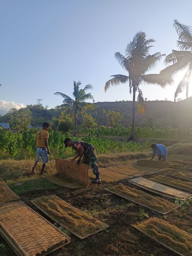 Selain berdialog dan menyerap aspirasi warga binaan, Sertu Firmansyah juga secara langsung turun membantu petani dalam proses penjemuran tembakau. Kehadiran Babinsa di tengah aktivitas pertanian warga ini disambut positif dan memberikan semangat tersendiri bagi para petani yang tengah bekerja.