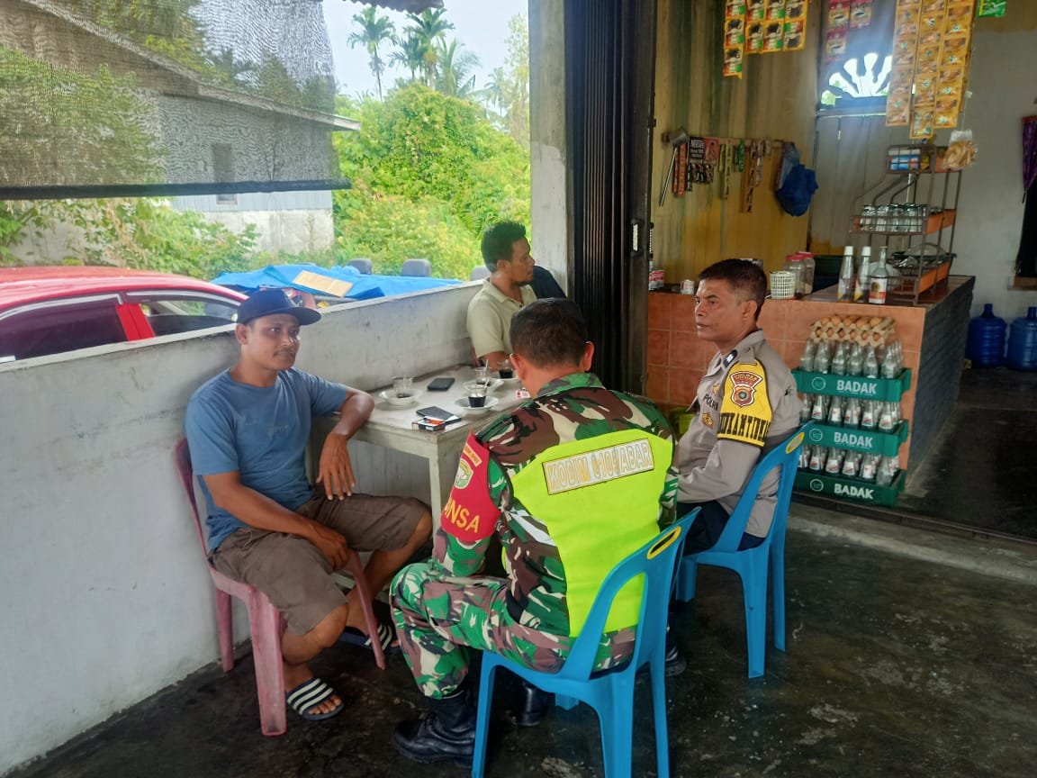 ACEH BARAT – Dalam upaya memperkuat kemitraan antara aparat keamanan dan masyarakat, Babinsa Koramil 09/Samatiga Kodim 0105/Aceh Barat, Serda Haswin Pranoto, bersama Bhabinkamtibmas Polsek Samatiga, Aiptu Taufik, melaksanakan kegiatan komunikasi sosial (Komsos) dengan warga Desa Suak Timah, Kecamatan Samatiga, Kabupaten Aceh Barat, Sabtu (18/10/2025).