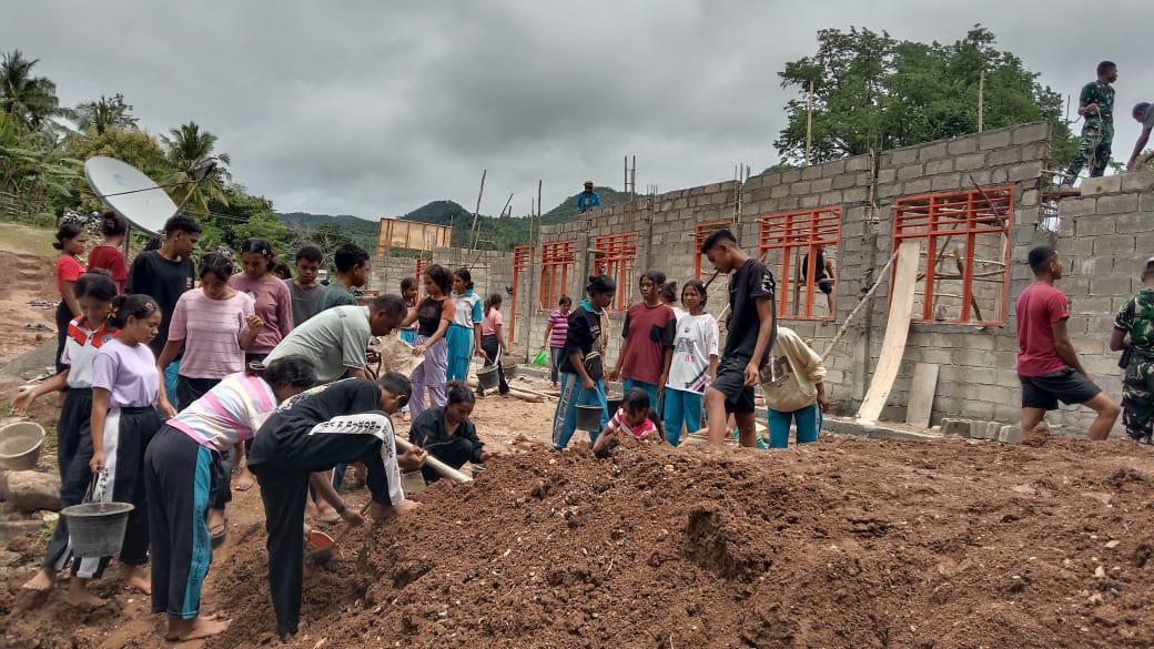 Kefamenanu, NTT – Sabtu (14/02/2026) – Hari libur kali ini dimanfaatkan secara berbeda oleh siswa-siswi SMAN Bikomi Nilulat yang terjun langsung ke lapangan. Mereka hadir di Desa Sunkaen untuk berpartisipasi dalam program TMMD Ke-127 yang diselenggarakan oleh Kodim 1618/TTU, dengan tujuan membantu percepatan pembangunan empat ruang kelas baru.